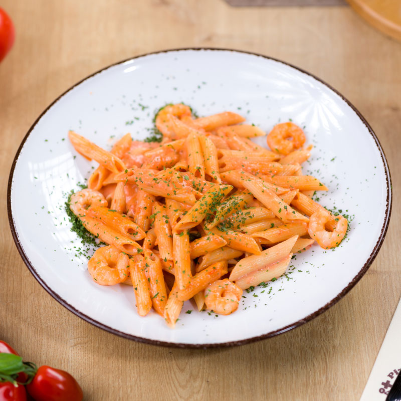 Zutaten: Shrimps, Weißwein, Knoblauch, Tomatensauce, Sahne